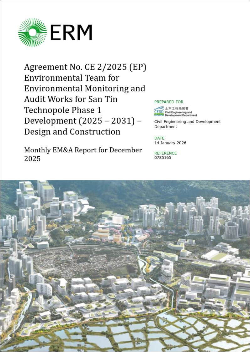 This is the Monthly Environmental Monitoring and Audit (EM&A) Report presenting the EM&A works during the period of December 2025 for the San Tin Technopole Phase 1 Development (the Project) in accordance with the EM&A Manual. Two (2) works contracts, Package 1 Contract 1 (ND/2024/09) and Package 2 Contract 1 (ND/2024/10), are active in this reporting period.